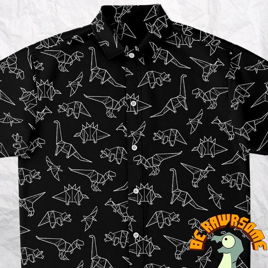 Personalize Origami Dinosaur Button Up Shirt Geometry Dinosaur Etsy Uk
